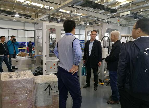 王總(中)與天津市機器人產(chǎn)業(yè)聯(lián)盟秘書長張春林先生(右白發(fā)者)交流機器人在細分市場的應(yīng)用